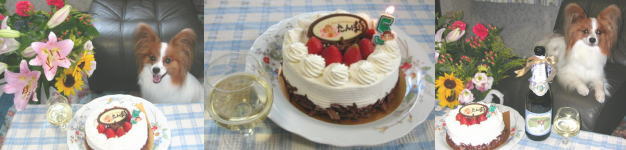 だから、ぼくがママの分も苺を食べてあげるよ。 ぼくって親孝行かも〜▼^♀^▼