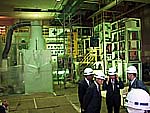 ←ウラン廃棄物処理施設(UWTF) 屋外貯蔵施設のウラン系の廃棄物を減容処理(量を少なくする)する施設であるウラン廃棄物処理施設(UWTF)を初めて視察する。 この施設は、平成10年10月の完成予定であったが、今回の指摘を受けて、来年4月の供用開始を目指し工事が急がれている。 |