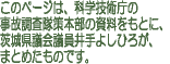 この資料は、99年11月13日と14日に茨城県那珂郡那珂町と那珂郡東海村で開催された、科学技術庁の周辺住民への健康に関する説明会で配布された資料「(株)ジェー・シー・オー東海事業所の事故による周辺への影響について<東海村及び那珂町の皆様方に対するご説明資料>」と、その際の説明をもとに作成したものです。