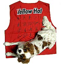 オープニング記念に全観戦者に配られたアントラーズのビブフとそれを妙に気に入った愛犬未来