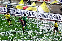 オープニングゲームでは、ホームチームの鹿島アントラーズが、前半、柏レイソルにリードを許した。後半20分過ぎ、柳沢のPKとゴールの2得点で逆転したが、1分後、レイソル大野のゴールで同点に追いつかれた。延長8分、長谷川がVゴールを決め、オープニングゲームを劇的な勝利で飾りました。