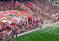 カシマスタジアムを真っ赤に染めよう・・・・。鹿島アントラーズFCは県立カシマサッカースタジアムのオープニングゲームの観戦者に赤いビブスを配布しました。