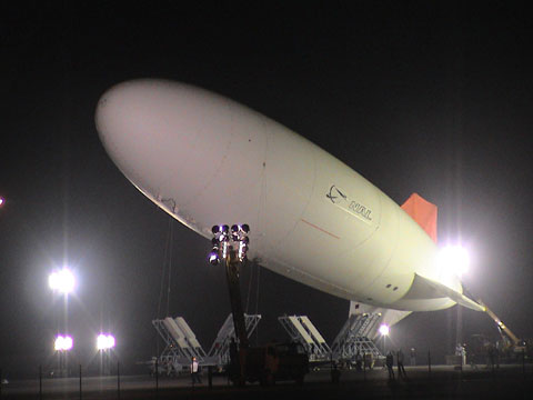 成層圏滞空試験機(飛行船)の放船時の模様(2003/8/4午前3:21、独立行政法人航空宇宙技術研究所のホームページより転載)