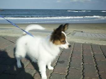 | 今日は抱っこでお散歩。潮風が気持ち良かったね。 |