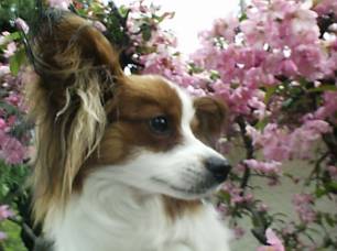 | 庭にある”かいどう”の花が満開なので記念写真。 |