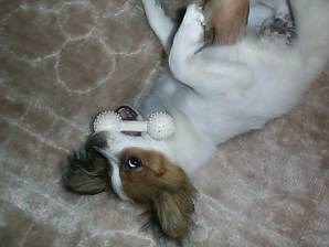| 遊んでほしいとおもちゃを持ってきてゴロリ! |