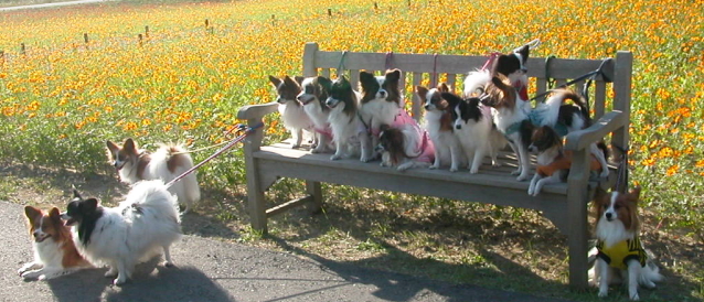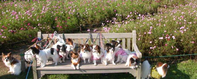 | ★コスモス畑で食べるお弁当・・そして、みんな和気あいあいとパピ談義〜♪ |