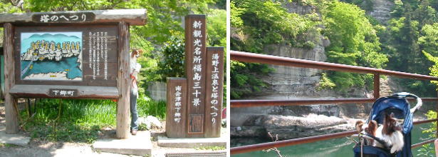 | 二日目は会津まで足を伸ばして、天然記念物「塔のへつり」を見学・・長年の浸食と風化で見事な景観! |