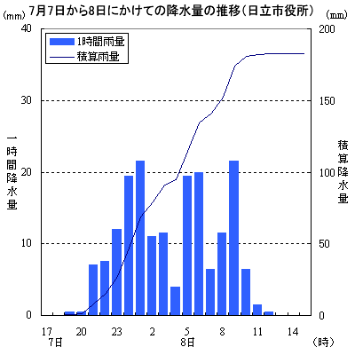 ●7月7日から8日にかけての気象の推移(日立市役所)