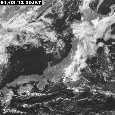 ●参考:2001年08月15日09 時の地上天気図と10時の気象衛星可視画像