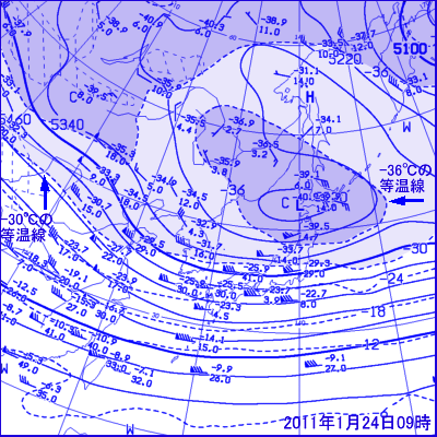 ●参考:1月24日06時の地上天気図と09時の500hPa面高層天気図