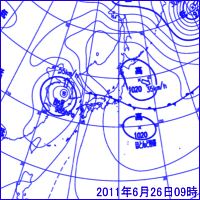 24日の夜になると前線が南下してきて北東の風に変わり、気温は下がっていきました。25日から26日にかけては曇りで弱い雨が降ったために、日中も気温がほとんど上がりませんでした。最高気温は20℃前後で、5月中旬並みの肌寒い陽気となりました。しかし、27日になると太平洋高気圧の中心が関東地方の南へ移動してきて前線は東北地方へ北上し、暖かい空気におおわれてきました。このため、27日の夜から気温が上がり出し、30日には最高気温32.3℃と再び真夏日(最高気温が30℃以上の日)になりました。この結果、6月の真夏日の日数は4日となり、2004年の5日以来の多い6月となりました。