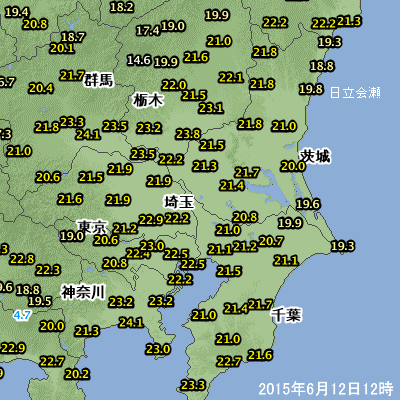 日立会瀬 20.2 29.3 13 11:47 11.8 07 03:29 水戸(金町) 20.9 30.2 15 14:44 12.6 07 04:55