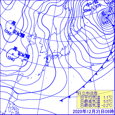 ●参考:2020年12月31日09時の地上天気図と10時の気象衛星可視画像
